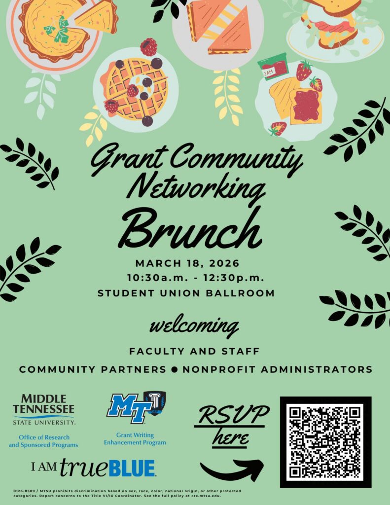 MTSU has an institutional subscription to GrantForward, a search engine for funding opportunities. Anyone with an MTSU email address can create an account. The system allows individuals to use automation (by uploading CVs or online publication lists) to create researcher profiles. Users can also manually add additional interests to their profile. By creating a saved search, users can automatically receive emails notifications of funding opportunities on a daily or weekly basis. Casey Penston, Program Assistant to the Office of Research and Sponsored Programs will provide a guided tutorial of the GrantFoward site via Zoom and take questions from participants.